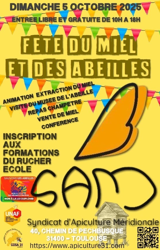 Le Syndicat d’Apiculture Méridionale (S.A.M.), fondée en 1889, regroupe actuellement plus de 500 apiculteurs amateurs et professionnels de la région Occitanie principalement de Toulouse et de la Haute-Garonne.